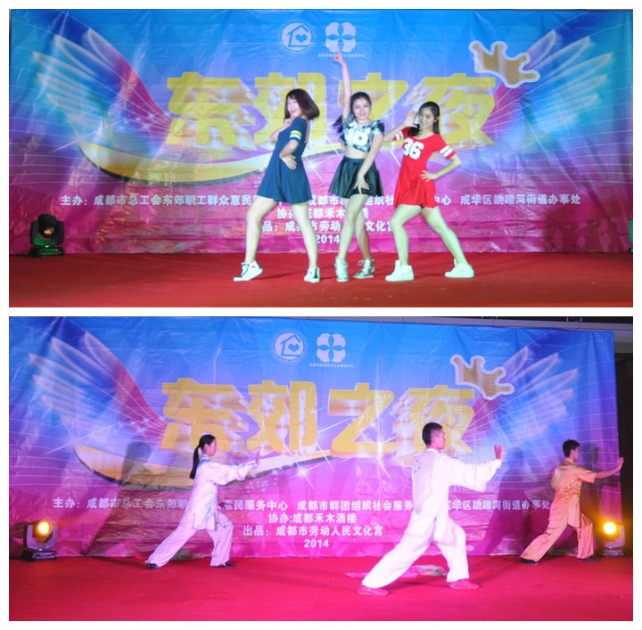 功夫舞旗拉开了本次活动的序幕,青春洋溢的啦啦操、异域风情的东方舞、健康阳光的活力操、动感火辣的拉丁舞给观众带去了冬日里的暖意。极具中国传统武术魅力的太极武韵和十八般武艺的真功夫表演赢得了现场的阵阵掌声。演出中穿插的互动猜灯谜环节,更是激发了群众的参与性和积极性。